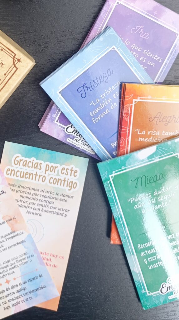 Juego de 42 tarjetas, diseñado para que cada día te dediques un tiempo para ti y reconocer tus emociones, incluye tarjeta de bienvenida a este espacio contigo mism@, tarjeta con mensaje de gratitud y 10 tarjetas por cada emoción (Ira, Tristeza, Alegría, Miedo). Recuerda, cada día es un giro de emociones y posibilidades.