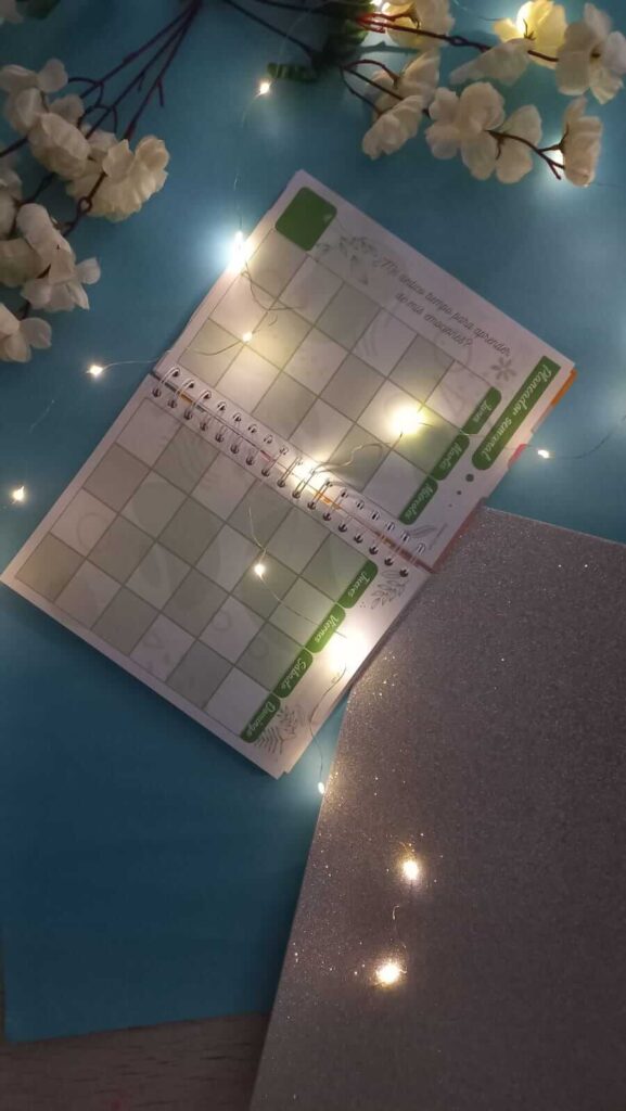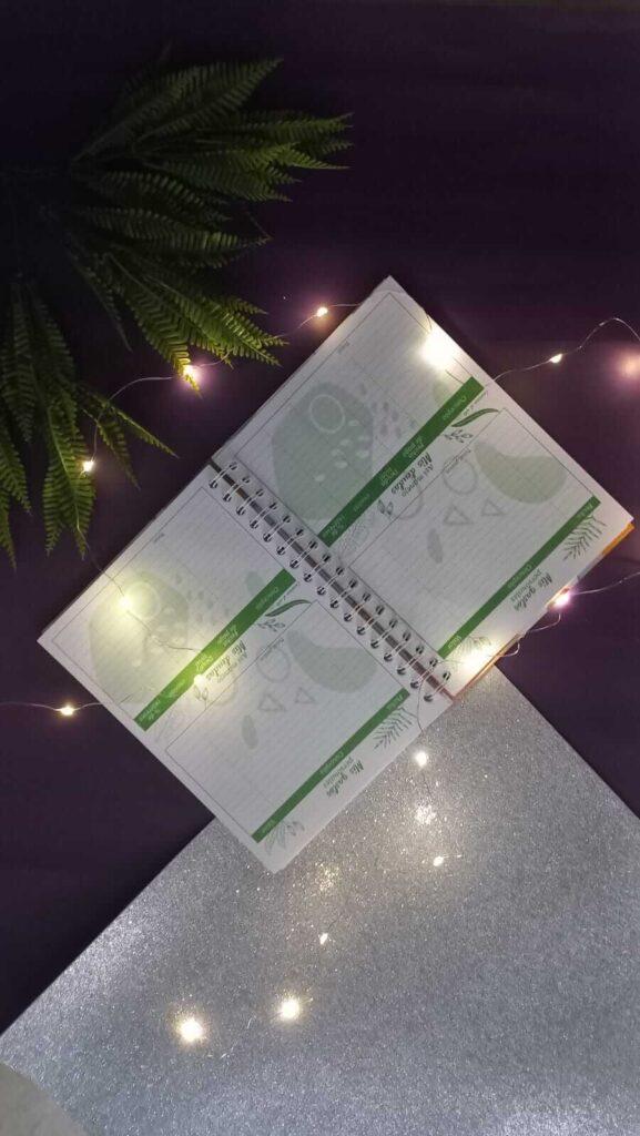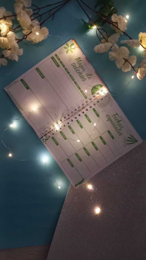 Agenda que contiene espacios para organizar tus ideas como: mapa de sueños, fechas especiales, el calendario de 12 meses en espacios en blanco para que lo puedas iniciar cualquier mes del año, ingresos y egresos y hojas en blanco, para que puedas escribir todo lo que necesites, incluye lapicero, stickers que te ayudan a recordar escritos importantes, y hermosa caja ya sea para regalo o para ti mism@.